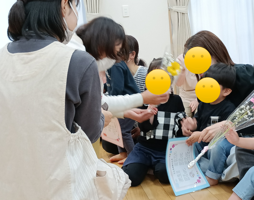おわかれかい まんまる 2026年03月30日 今日はまんまるのお別れ会。 1年間で、で・き・た!がたくさん増えたね。 みんなの成長をお母さんやお父さんと一緒に振り返りました。 最後は花道でお見送り。また、遊びに来てね~♪