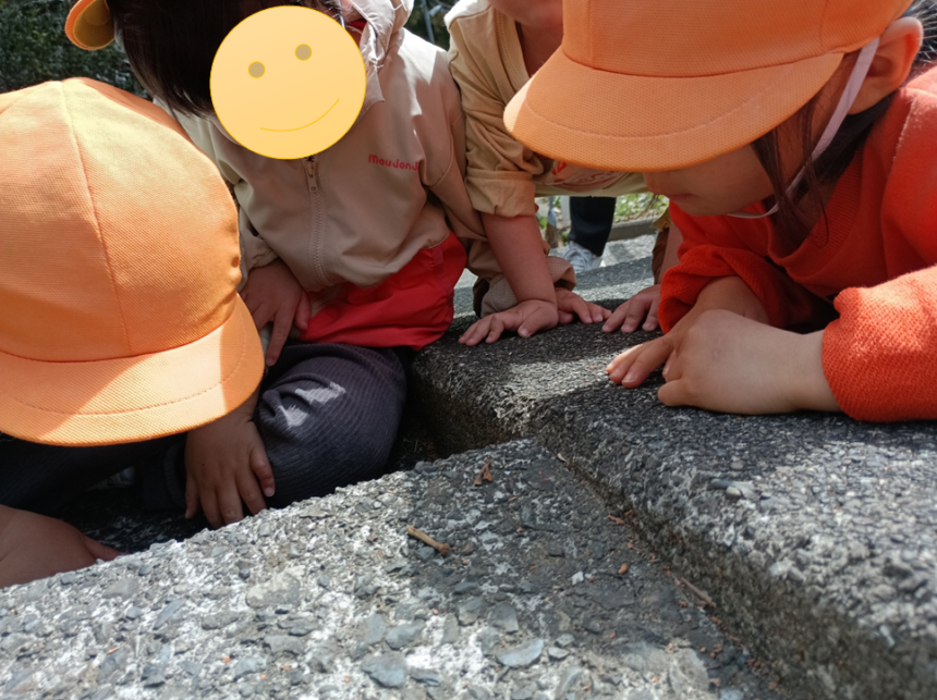 たくさん歩こう まんまる 2026年03月27日 暖かくなってきて、お花や虫を探して外に出るのが楽しい季節になってきました。 まんまるでは、体力づくりも意識してたくさんお散歩にたくさん出掛けています。 公園ですべり台を滑ったり ダンゴ虫を見つけてみんなでじっくり観察したりもしました。